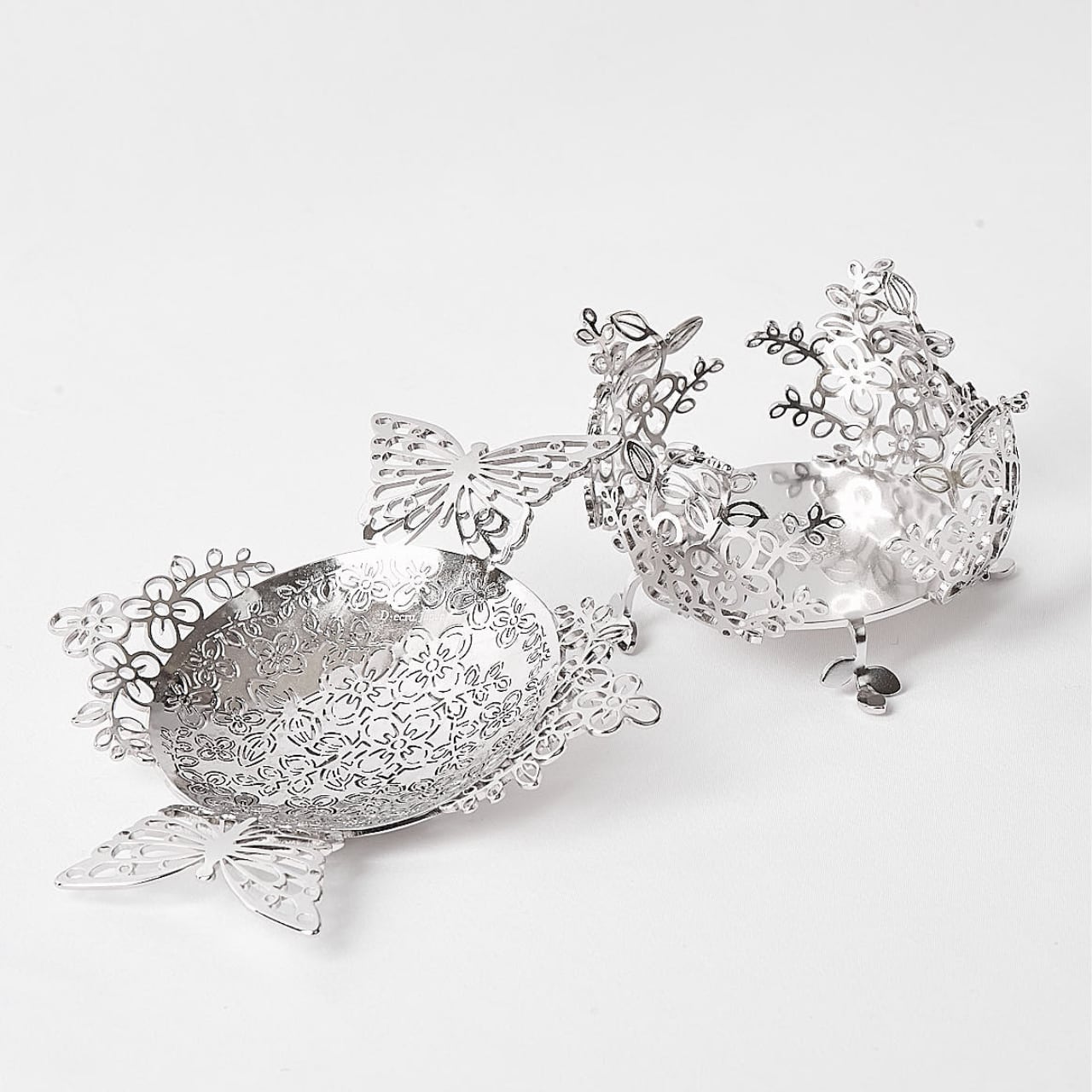 二羽のパピヨンが施された美しくエレガントなティーストレーナー。